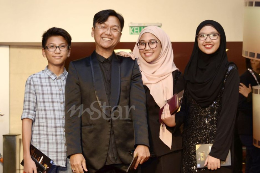 Pengarah Aziz M. Osman (dua dari kiri) bersama anak-anaknya hadir pada malam kemuncak Festival Filem Malaysia ke 28 (FFM28) di Pusat Konvensyen Kuala Lumpur pada 3 September 2016. FOTO: HAFIS IDZLA