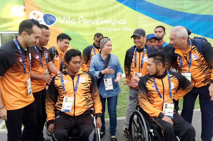 Penaung Majlis Paralimpik Malaysia Tun Jeanne Abdullah (tengah) kini berada di Rio de Janeiro, Brazil untuk memberi sokongan moral kepada para atlet Paralimpik Malaysia yang membawa cabaran pada temasya Sukan Paralimpik ke-15 dari 7 hingga 18 September. -fotoBERNAMA