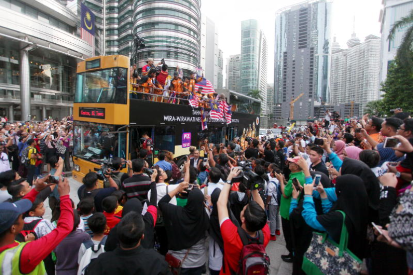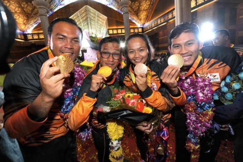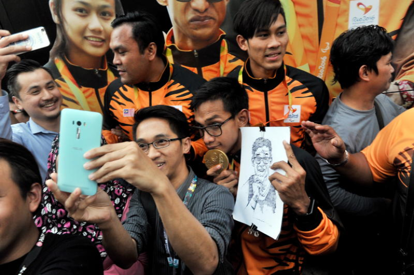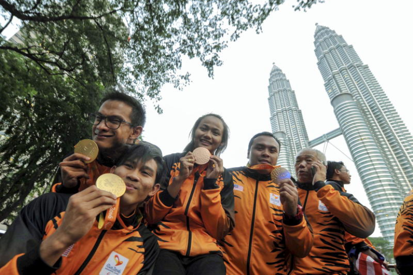 Wira dan wirawati negara pada temasya Sukan Paralimpik Rio de Janeiro disambut peminat sukan negara ketika tiba di perkarangan Menara Berkembar Kuala Lumpur (KLCC). Foto Bernama