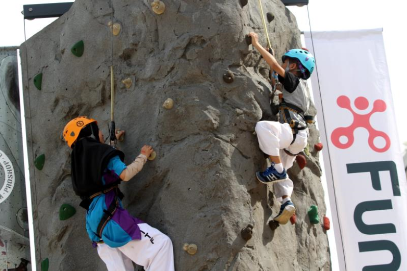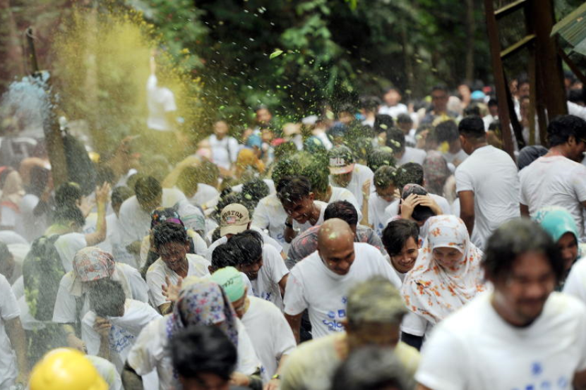 Peserta ditabur tepung berwarna ketika menyertai acara Colour Climb Bukit Pelindung sempena Hari Sukan Negara 2016, Sabtu.