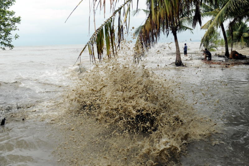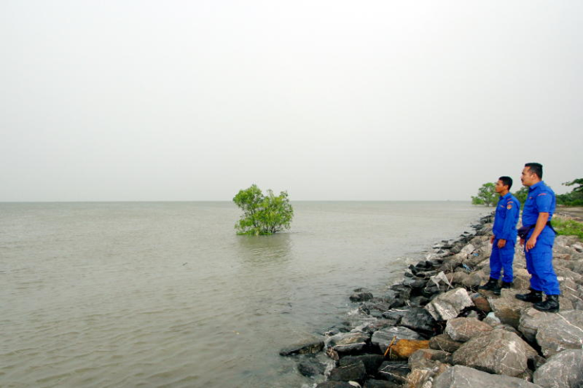 Anggota Angkatan Pertahanan Awam Malaysia (APM) memantau paras air laut berikutan fenomena air pasang besar di pesisir pantai Kuala Perlis, Perlis. APM melakukan pemantauan di sepanjang pesisir pantai bermula dari Bukit Batu Putih Kuala Perlis sehingga ke Kuala Sanglang sepanjang tempoh air pasang. FOTO: BERNAMA