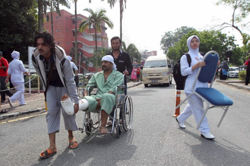 Pesakit dikeluarkan dari wad untuk diselamatkan akibat kebakaran yang berlaku di Unit Rawatan Rapi (ICU), Hospital Sultanah Aminah pada Selasa, 25 Oktober 2016 yang mengorbankan enam orang. FOTO: ABDUL RAHMAN EMBONG