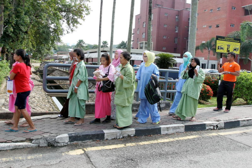 Pesakit-pesakit dibantu oleh jururawat untuk proses pemindahan akibat kebakaran di tingkat dua unit rawatan rapi (ICU) selatan Hospital Sultanah Aminah (HSA), Johor Baru pada Selasa, 25 Oktober 2016. FOTO: BERNAMA