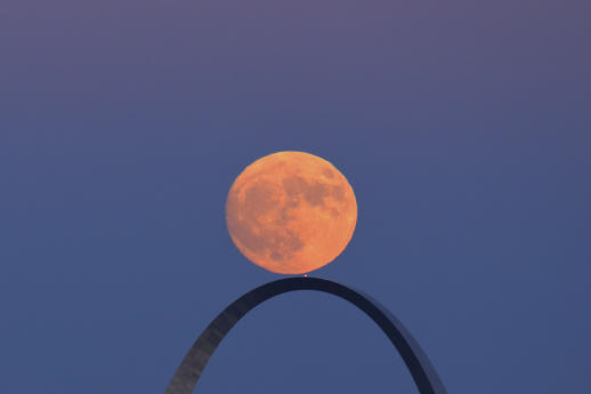 PEMANDANGAN menarik fenomena supermoon ketika melewati struktur Arch di St. Louis pada 13 November 2016. - AP