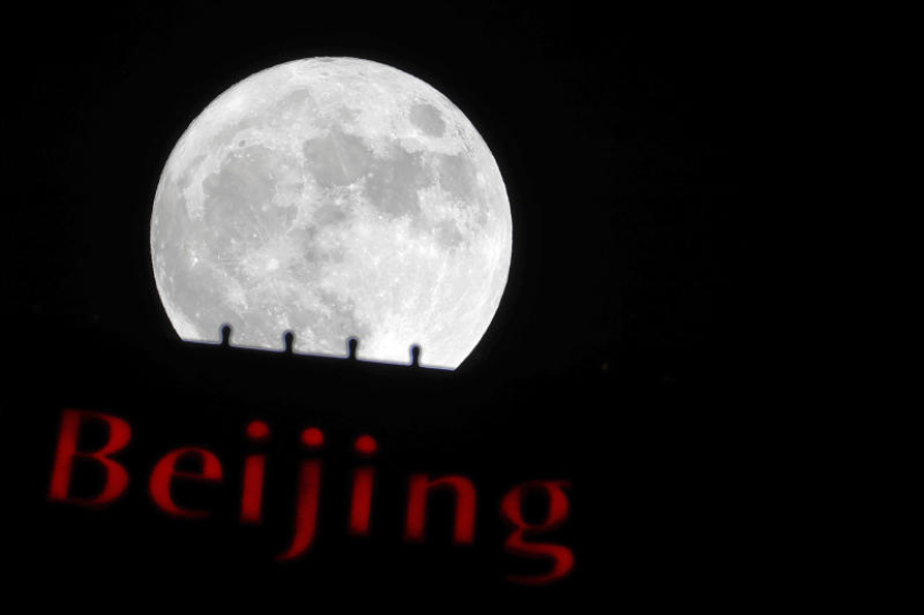 FENOMENA supermoon yang dirakamkan di sebuah bangunan di Beijing, China pada 14 November 2016. - AP