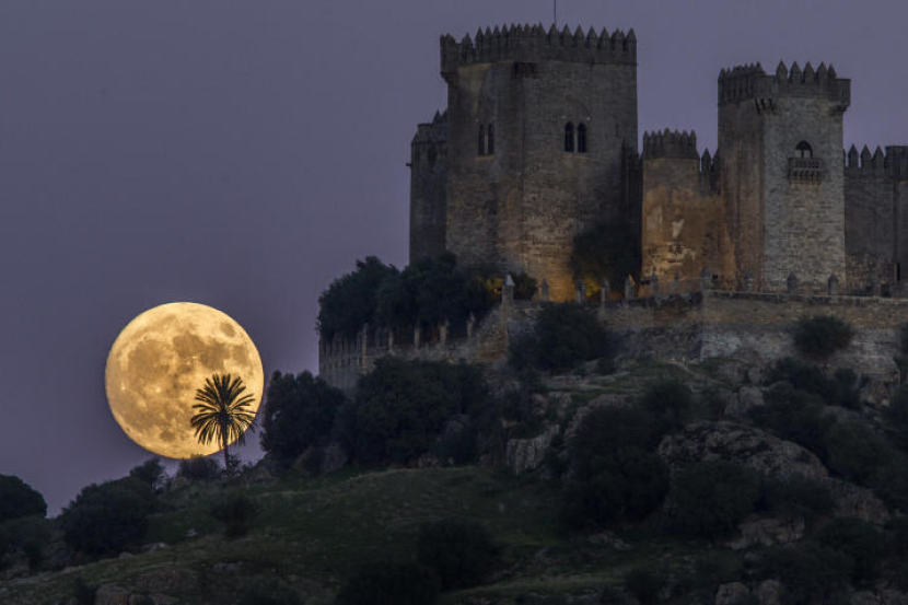 PEMANDANGAN indah istana di Almodovar di Cordoba, selatan Sepanyol diserikan lagi dengan fenomena supermoon pada 13 November 2016. - AP