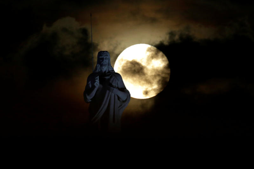 FENOMENA supermoon dirakamkan berdekatan patung Jesus Christ di Havana, Cuba pada 14 November 2016. - REUTERS