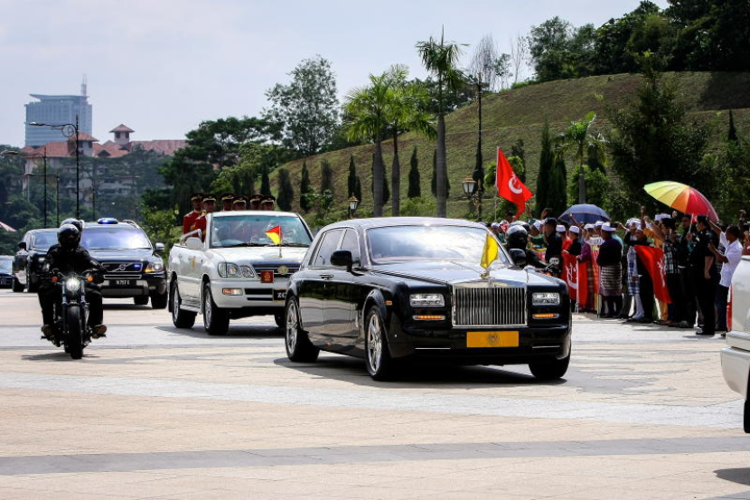 Kenderaan rasmi Sultan Muhammad V sewaktu tiba di perkarangan Istana Negara sempena perlantikan baginda sebagai Yang di-Pertuan Agong Ke-15.