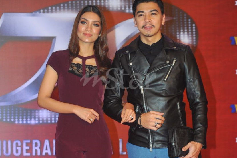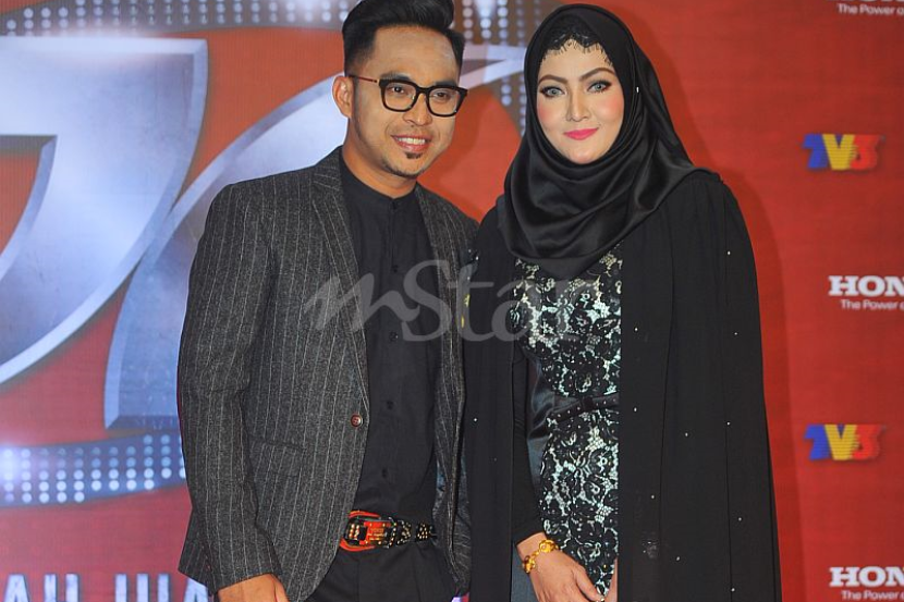 Mark Adam dan isterinya di acara karpet merah, Anugerah Juara Lagu ke 31 (AJL31) yang diadakan di Pusat Dagangan Dunia Putra (PWTC) pada 22 Januari 2017. FOTO: HAFIS IDZLA