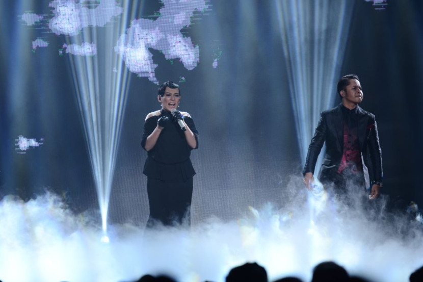 Elizabeth Tan dan Awi Rafael menyampaikan lagu Setia pada Anugerah Juara Lagu ke 31 (AJL31) di Pusat Dagangan Dunia Putra (PWTC) pada 22 Januari 2017. FOTO: HAFIS IDZLA