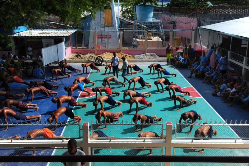 Banduan di penjara Narathiwat, Thailand menjalani latihan fizikal sebelum dibenarkan bertemu ahli keluarga yang melawat sebelum bermulanya Ramadan.