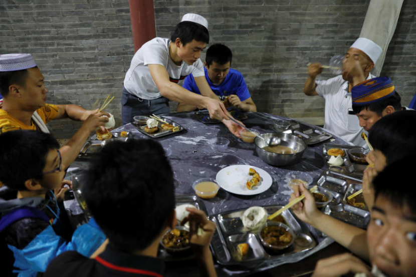 Umat Islam sedang menikmati juadah berbuka di Masjid Niujie, Beijing di China.