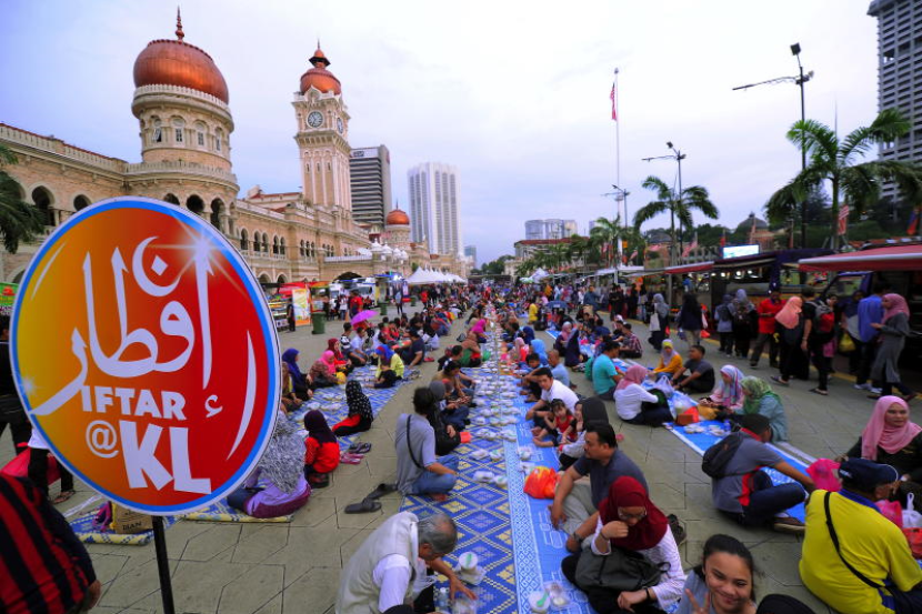 Orang ramai yang terdiri daripada warga kota dan para pelancong luar negara bersama-sama memeriahkan program iftar@kl 2017 di Dataran Merdeka.