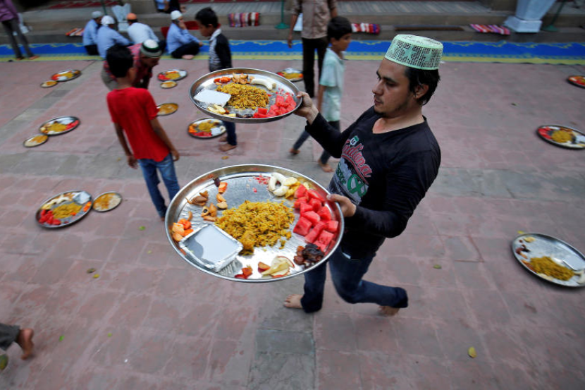 Seorang lelaki membawa juadah iftar untuk umat Islam pada bulan Ramadan di Masjid Sidi Saiyyed, Ahmedabad, India.