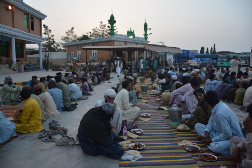 Umat Islam Pakistan berkumpul di pekarangan masjid di Quetta untuk berbuka puasa bersama.