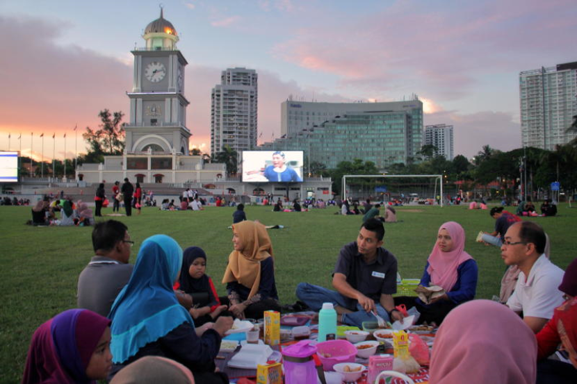 Dataran Bandar Raya Johor Bahru kelihatan penuh dengan orang ramai yang membawa keluarga mereka untuk berbuka puasa pada hujung minggu.