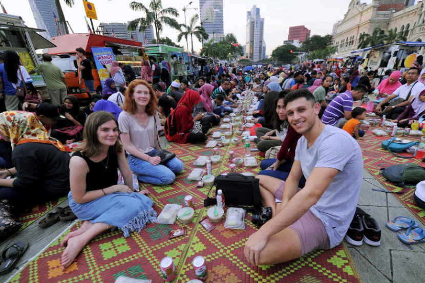 Pelancong luar negara tidak melepaskan peluang merasai suasana berbuka puasa bersama umat Islam pada program iftar@kl 2017 di Dataran Merdeka.