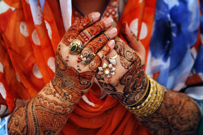 Wanita Pakistan menghias inai pada jari dan lengannya sempena sambutan Aifilfitri di Masjid Badshahi, Lahore.(AP Photo/K.M. Chaudary)