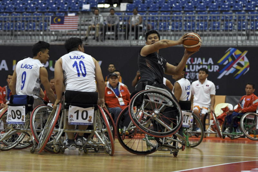 Atlet Negara Khairul Azman ketika beraksi pada acara Wheelchair Basketball Sukan Para Asean KL2017 di di Pusat Pameran dan Dagangan Antarabangsa Malaysia (MITEC). Malaysia menang dengan mata 80-28. -fotoBERNAMA