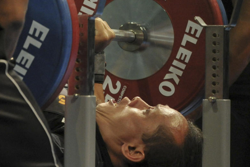 Atlet negara Gustin Jenang beraksi dalam acara angkat berat 59 kilogram (kg) sekaligus meraih pingat gangsa dengan catatan 120 kg pada Sukan Para ASEAN ke-9 Kuala Lumpur 2017 di Pusat Pameran dan Dagangan Antarabangsa Malaysia (MITEC). -fotoBERNAMA