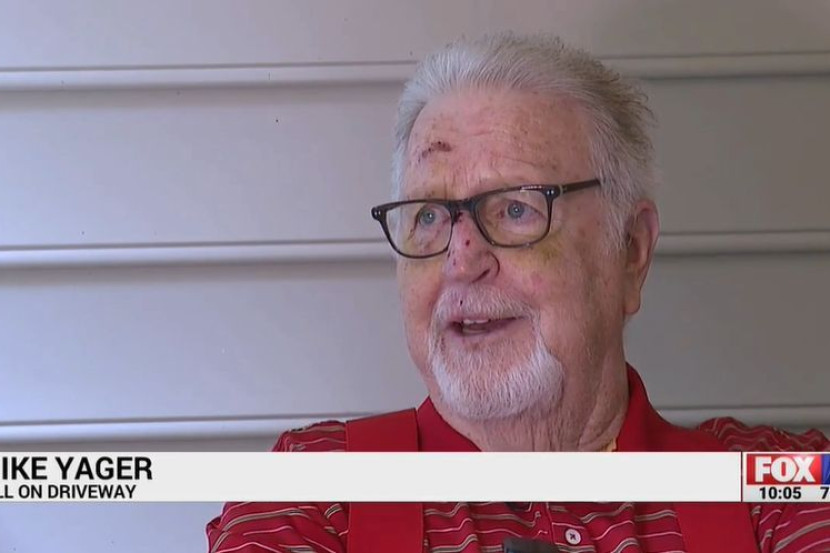 Mike Yager, 78, terjatuh seorang diri di jalan masuk ke rumahnya dan mengalami kecederaan sehingga membuatkannya pengsan.