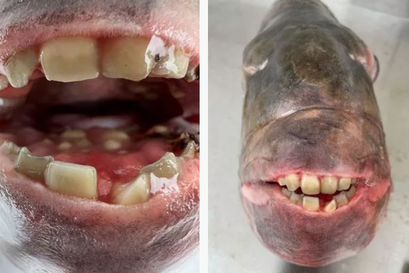 SEORANG pemancing terkejut apabila berjaya menangkap seekor ikan aneh yang mempunyai gigi menyerupai gigi manusia.