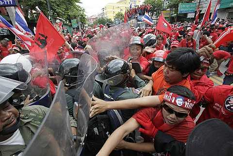 Beratus-ratus penunjuk perasaan merempuh masuk ke perkarangan Dewan Pameran dan Konvensyen Pattaya di Pattaya, Thailand dalam usaha mengganggu Sidang Kemuncak Asean ke-14 dan sidang kemuncak berkaitan.