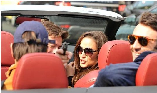 Pippa dan ketiga-tiga lelaki itu dilihat menaiki sebuah kereta Audi berhud di tengah-tengah bandar ini.