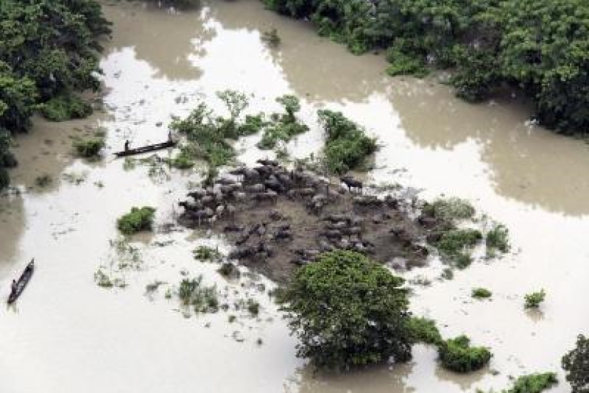 Pegawai berkata, lebih 70 peratus daripada Taman Negara Kaziranga yang terkenal dengan harimau, badak dan gajah satu bertanduk ditenggelami air.