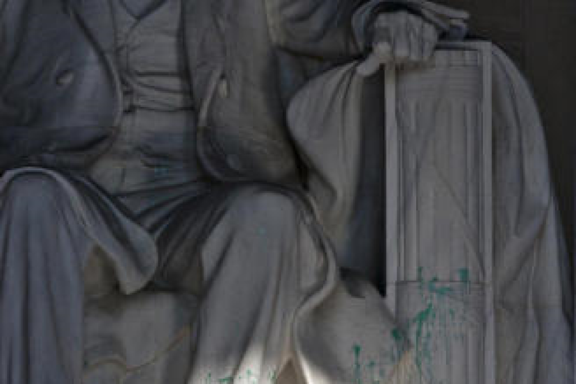 Berbalik kepada Memorial Lincoln, pekerja terus memadam baki cebisan cat hijau dengan teliti pada patung marmar putih Presiden Abraham Lincoln ketika Perang Saudara.