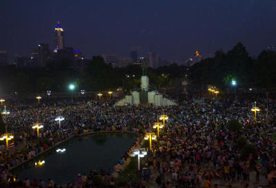 Tiada tanda-tanda penunjuk perasaan berundur selepas berlaku letupan, sebaliknya mereka lebih bertegas untuk terus berada di tempat masing-masing. Hari ini hari pertama pendaftaran calon dalam sistem senarai parti itu yang dijangka berlangsung sehingga 27 Disember. Ramai wakil parti politik melapor diri di balai polis Dindaeng, yang pergi ke sana selepas tawar hati dengan penunjuk perasaan ketika mereka cuba mendaftar di stadium Thai-Jepun (Dindaeng), tapak asal bagi pendaftaran itu.