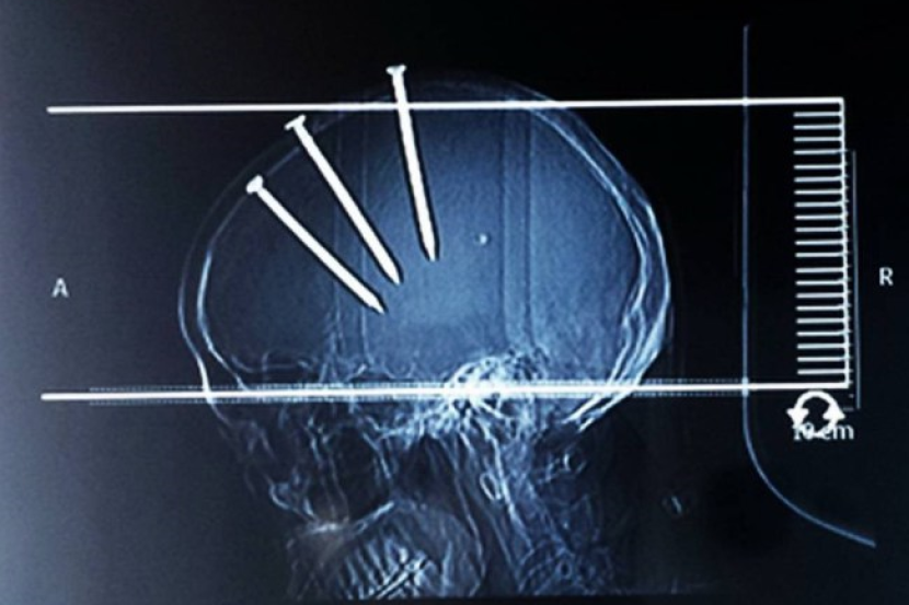 Dalam kejadian yang berlaku tiga bulan lalu itu, lelaki malang yang tidak didedahkan identiti dirinya mengakui memaku kepalanya sendiri walaupun pasukan perubatan percaya perbuatan itu dilakukan oleh individu lain.
