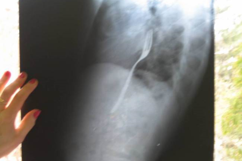 Doktor yang membuat imbasan x kemudiannya terkejut apabila mendapati garpu berada di dalam usuS Calincescu.