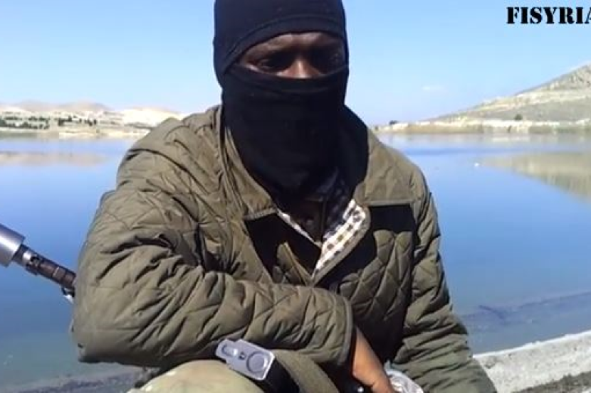 Bekas anak didik Arsene Wenger itu dikesan menutup mukanya dengan kain hitam sambil memegang senjata api jenis, AK-47 dan bercakap dengan penonton dalam Bahasa Inggeris yang baik.