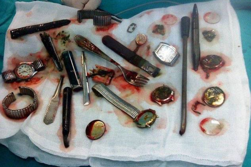 Hasil imbasan x, pasukan perubatan terkejut melihat objek yang begitu banyak di dalam perut suspek.