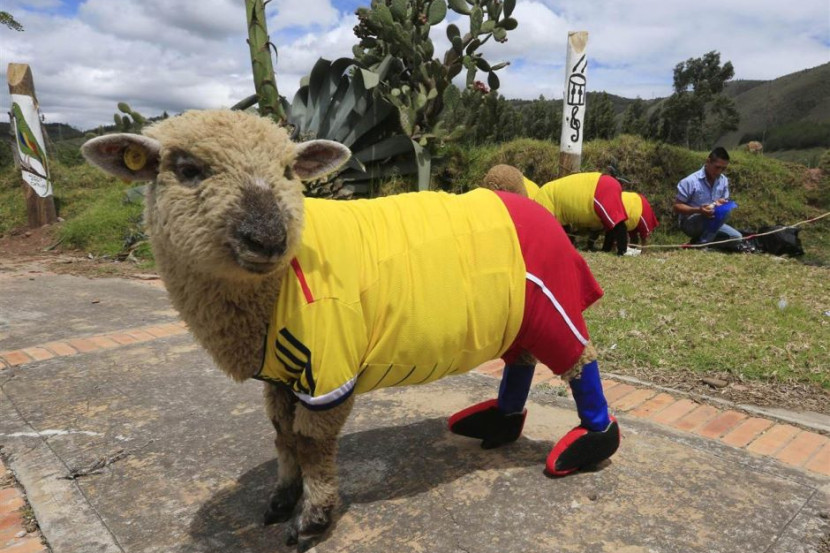 Biri-biri dipakaikan jersi lengkap pasukan Columbia untuk perlawanan Piala Dunia Biri-Biri.