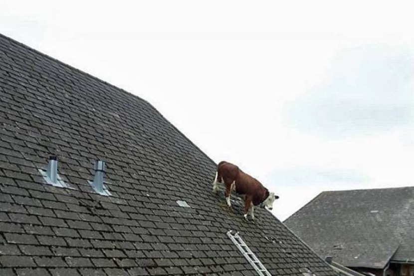 "Saya tidak percaya dengan apa yang saya lihat dan terpaksa melihat sebanyak tiga kali untuk memastikan apa yang saya lihat adalah benar. Seekor lembu berada di atas bumbung," katanya.
