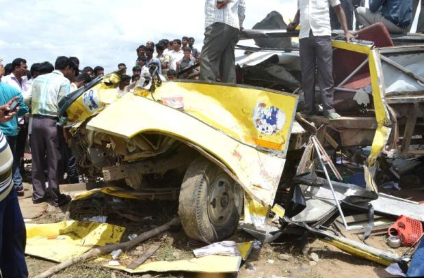Bas itu dalam perjalanan ke sekolah ketika kejadian yang berlaku di kampung Masaipet, kira-kira 62 kilometer dari ibu negeri Hyderabad. - AFP