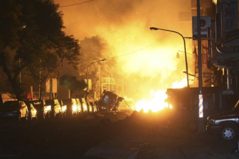 Sementara itu, rakaman video stesen penyiar ETTV Taiwan menunjukkan api marak dengan asap tebal kelihatan di udara di tengah jalan di bandar berkenaan .