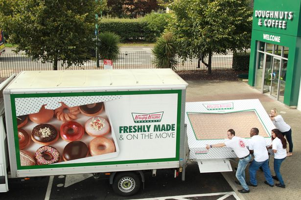 "Kita fikir lebih 2,000 donat ini merupakan cara paling tepat untuk memberikan keterujaan kepada para penggemar Krispy Krema dan memperlihatkan bahawa kami kini boleh didapati untuk majlis-majlis besar." - mirror.co.uk