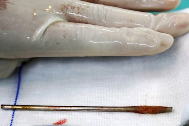 Pembedahan dilakukan untuk mengeluarkan besi itu, bagaimanapun pihak hospital tidak memaklumkan sama ada perbuatannya itu boleh memberi kesan jangka panjang atau menyebabkan kerosakan pada organ dalamannya.