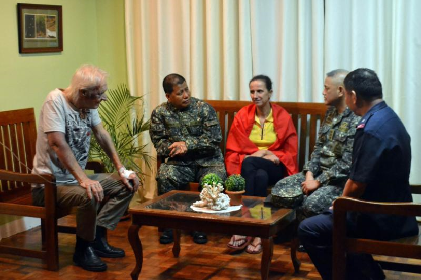 Stefan Okonek, 70-an dan pasangannya Henrike Dielen, 50-an, tiba di Manila dengan menaiki pesawat peribadi dari Zamboanga selepas dibebaskan kumpulan Abu Sayyaf pada Jumaat.