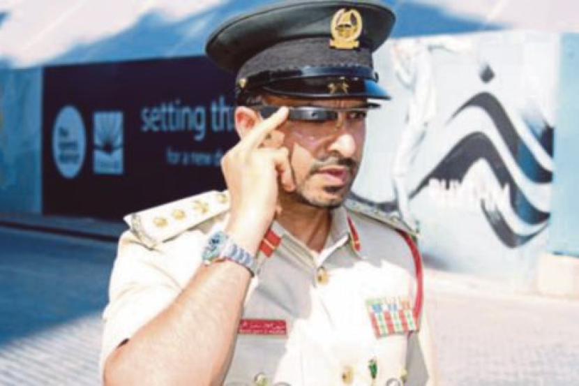 Anggota polis trafik Dubai menggunakan peranti Google Glass ketika bertugas.