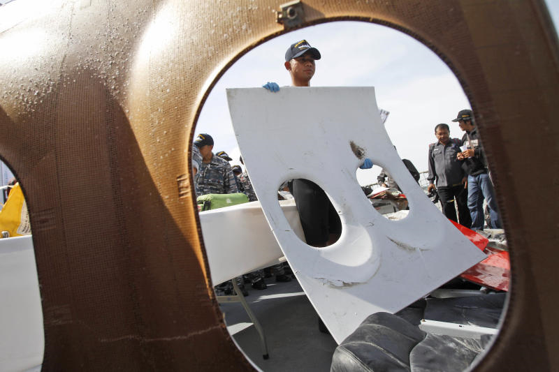Bahagian tingkap pesawat yang ditemui ketika operasi di Laut Jawa.