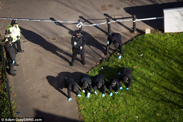Anggota polis sedang berusaha mencari bukti di kawasan Becky dibunuh.
