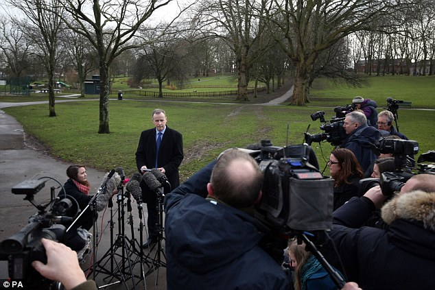 Suprintendan Mike Courtiour mengadakan sidang media mengenai pembunuhan tersebut berhampiran lokasi kejadian.