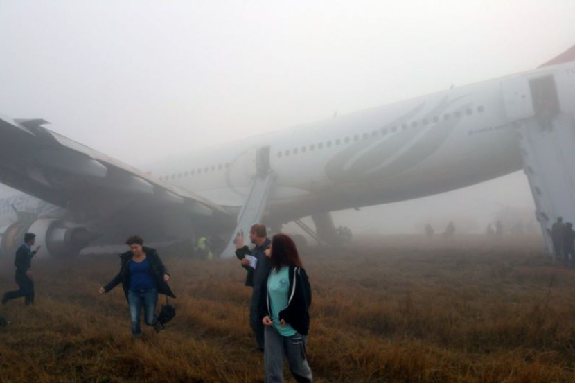 Ia menunjukkan para penumpang dalam keadaan ketakutan menggelongsor turun menggunakan luncur kecemasan sewaktu proses pemindahan selepas pesawat Airbus A330 itu terbabas dari landasan di Lapangan Terbang Antarabangsa Tribhuvan di Kathmandu akibat masalah teknikal.