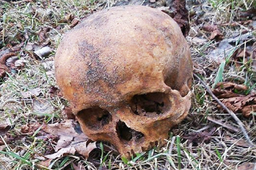 Bagaimanapun apabila didekati, dia mendapati, Roman, 8, sedang memegang tengkorak manusia yang diselaputi tanah.