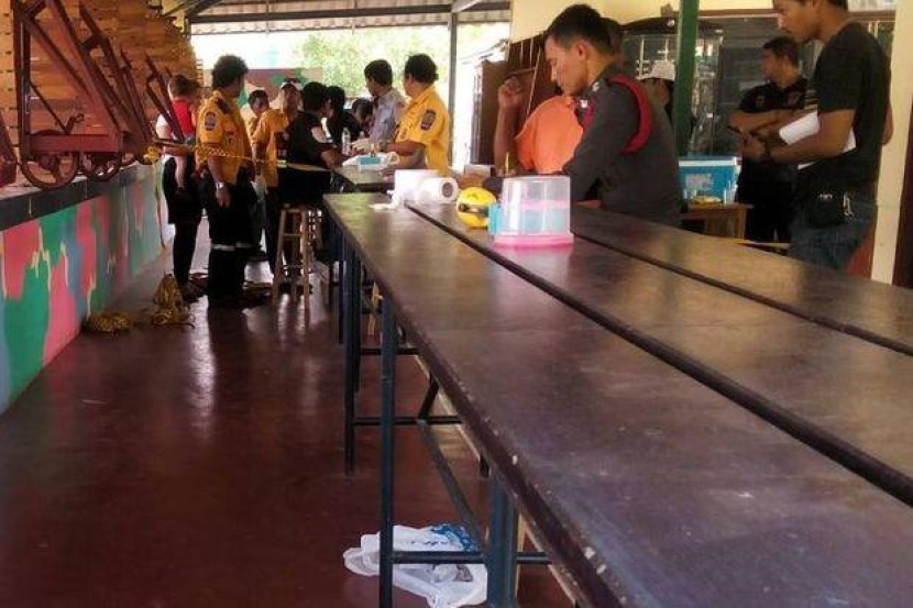 Tindakannya itu cuba dihalang petugas lapang sasar berkenaan tetapi gagal. Mayatnya dibawa ke Hospital Thalang.
