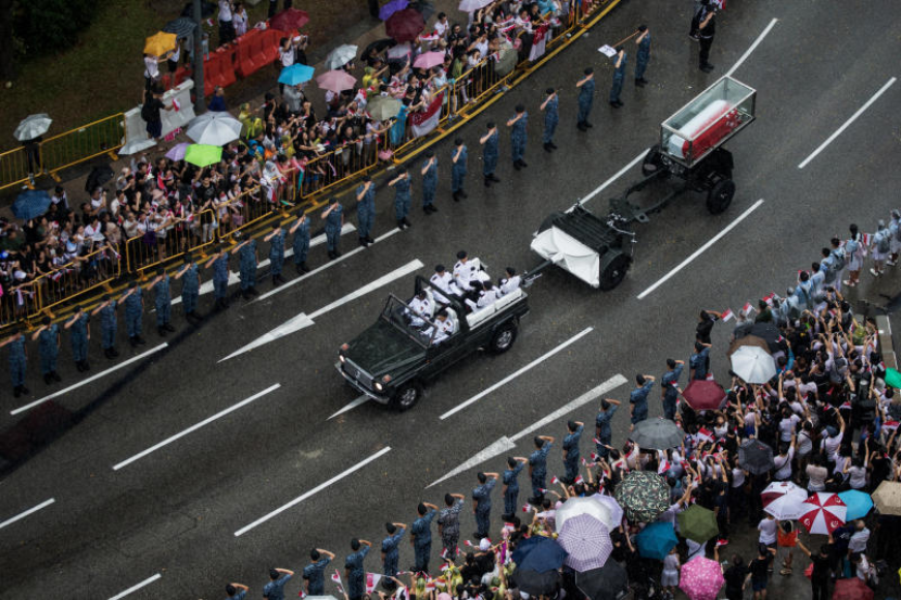 Tanpa menghiraukan hujan, rakyat Singapura termasuk pegawai khidmat awam daripada agensi-agensi keluar beramai-ramai dan memenuhi kawasan di sepanjang laluan itu untuk memberikan penghormatan terakhir kepada pemimpin itu, yang telah mentransformasikan negara ini daripada kelas dunia ketiga kepada bandaraya paling moden dan aman untuk dihuni di dunia ini.